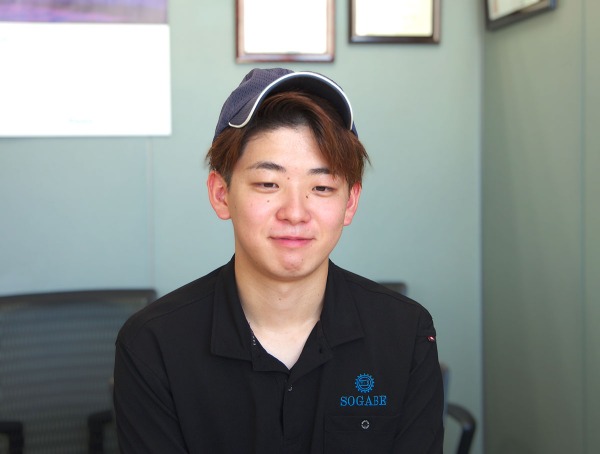 インターンシップで曽我部鐵工所に来た際、皆が優しくて接しやすかったのが印象的でした。会社選びは人間関係や職場環境を重視していたので、第一志望を曽我部鐵工所に選びました。先生や親にも自分の感じたことを伝えると「曽我部がいいね」といってくれたのも後押しになりました。第二・第三志望も考えましたが、曽我部一択の思いで、落ちたら来年も受けるぞという気持ちで面接に臨みました。