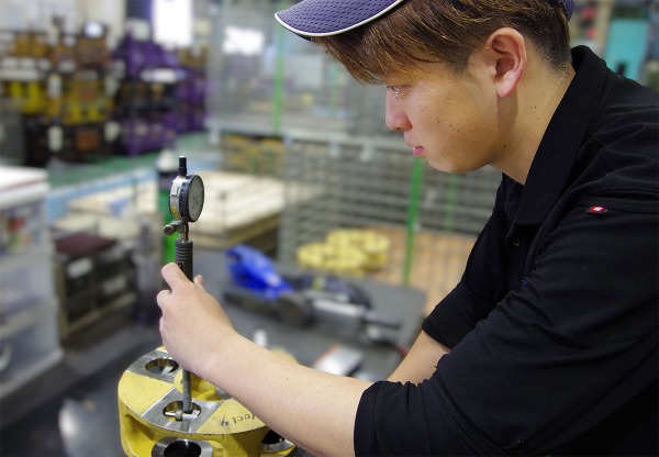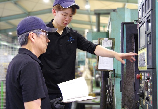 まずは、けがをしないこと。作業が止まってしまい、周りにも迷惑が掛かりますから。そして、周りへの気配りと思いやりです。機械に取り付ける工具の交換作業や、加工が間に合わない時など、係の皆で協力して納期に間に合わせます。後輩の私でも、先輩の作業を助けられることがある、お互い様の精神を意識しています。
